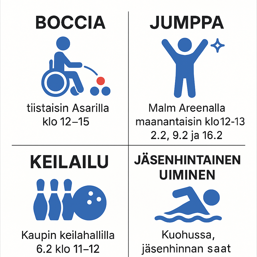Yhdistyksemme toimii esteettömän ympäristön, saavutettavien palveluiden ja osallisuuden puolestapuhujana. Toimintamme perustuu vertaistukeen, yhteisöllisyyteen ja vaikuttamistyöhön, jonka tavoitteena on parantaa arjen sujuvuutta ja vahvistaa jokaisen oikeutta osallistua omassa kotikunnassaan.