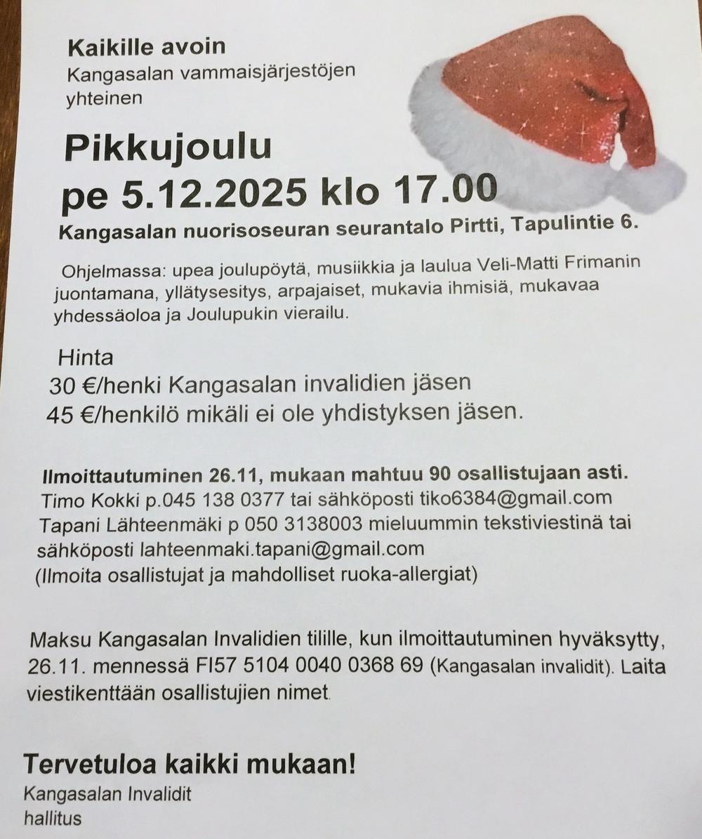 Yhdistykselle on otettu käyttöön sähköpostiosoite info@kangasalaninvalidit.fi jonka kautta yhdistykselle voi lähettää sähköpostia. Syyskokous perjantaina 11.11.2025 klo 15.00 alkaen Kangasalan…